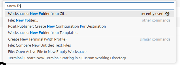 You’ll somehow learn how to use this code editor. No big deal. For now I just want to show you one thing. You press the keys ctrl shift p to get a small menu with “commands”. You can run many different things from here. I think it’s the easiest way to do it. We might use that a few times in the guide. It’s also helpful for me because that way I won’t have headaches trying to find out where that specific command appears in the interface. Just write the description of the command and it will appear. Here, an example: