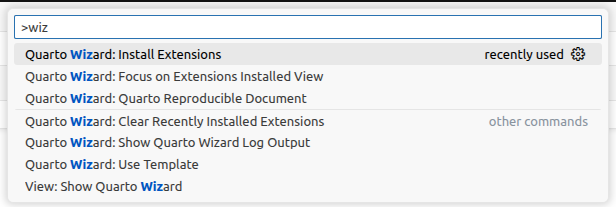 After installing the extension, you can play a bit with the commands. For the one that allows you to install extensions, you might also find it easier to first search through them here. The ones that are custom article templates are most likely under Formats. Or the ones that directly appear in the command Quarto Wizard: Use Template. Or the ones from the first list I linked… You can find out.